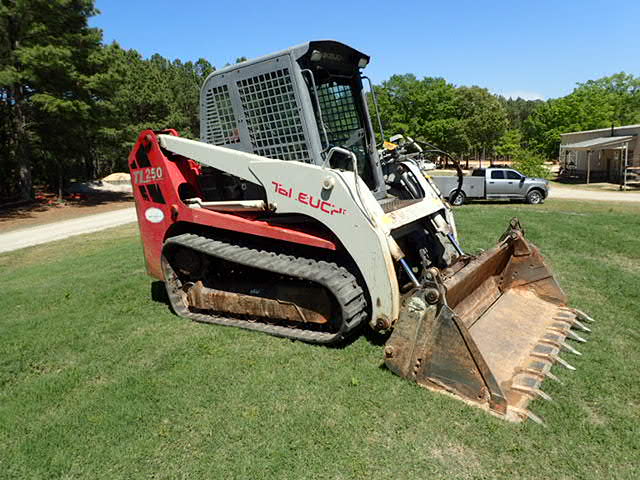 Takeuchi TL250 Skid Steer, Kubota Diesel, 5427 hours showing, cab, a/c Standard Flow w/ CID 84" 4-n-1 Bucket